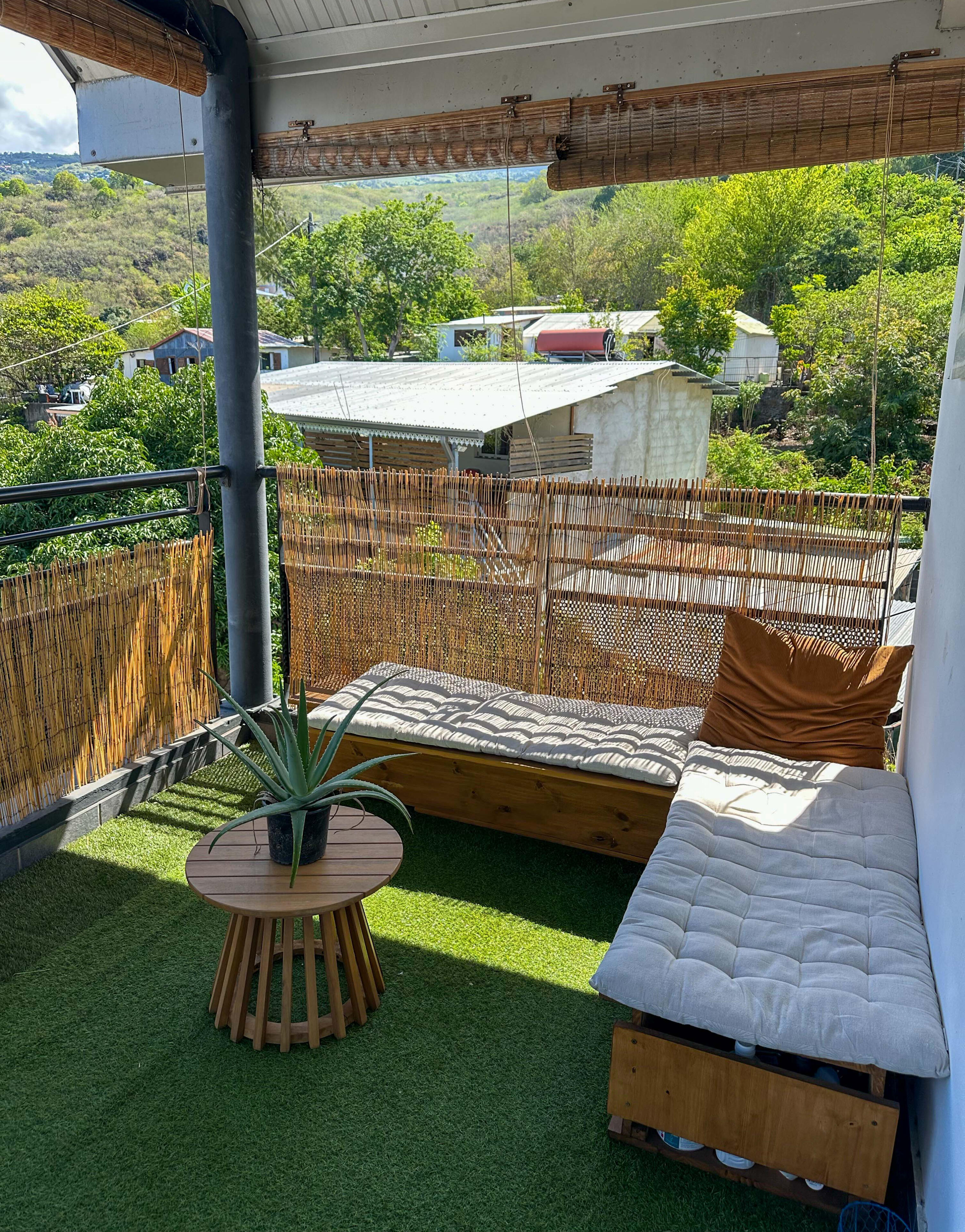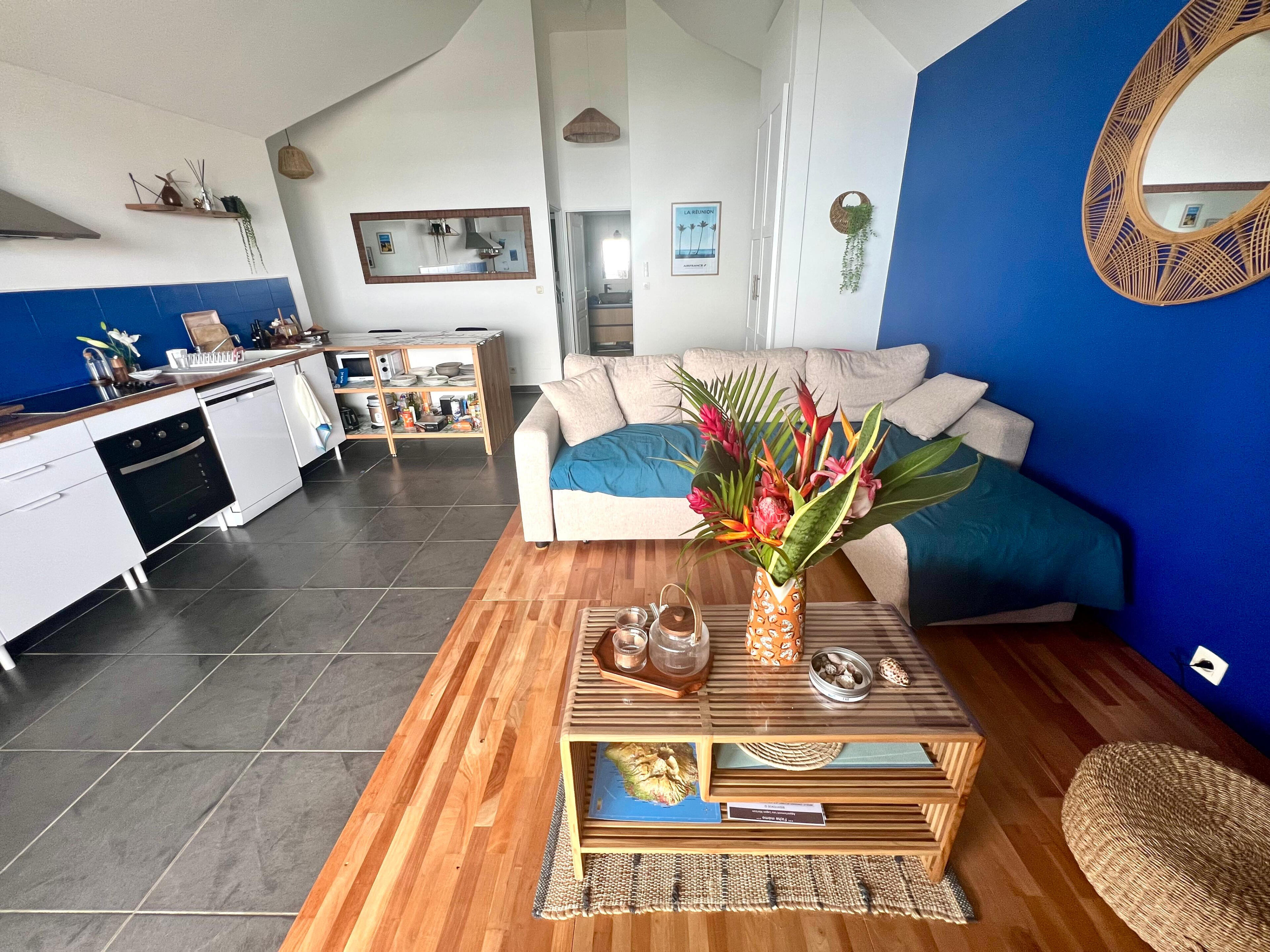 À louer au centre de Saint-Leu, appartement refait à neuf, lumineux et confortable, avec vue sur la mer et les montagnes.
